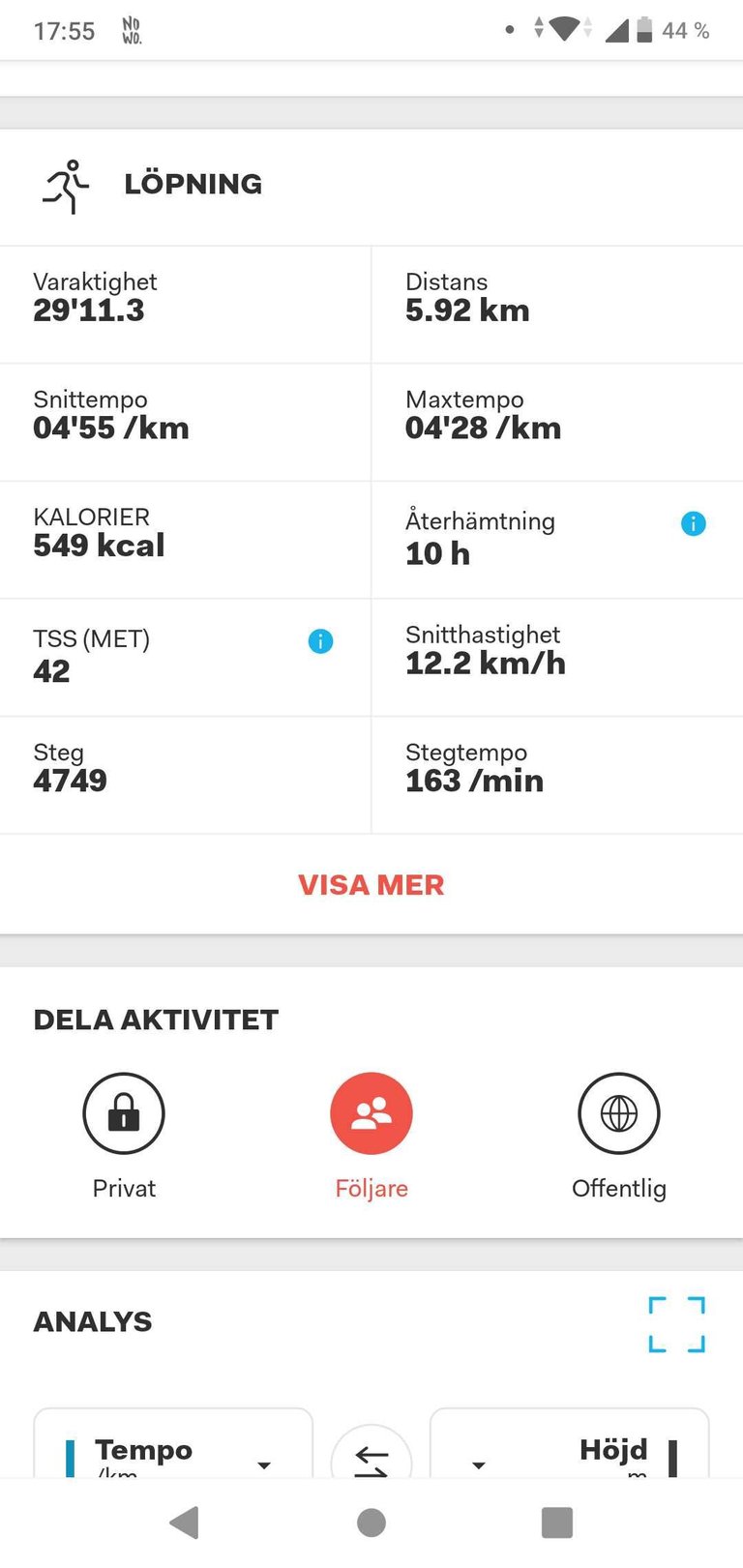 Didn't have much time after work because the forecast said rain. So just got home, changed and then did a 6km run.