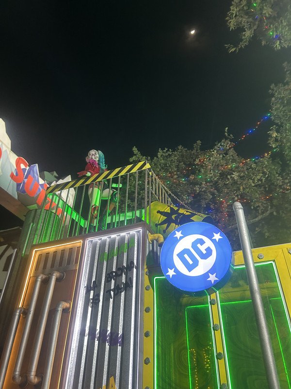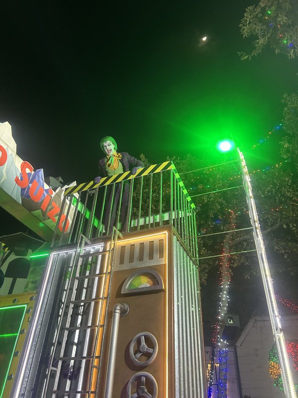 Bright green lights, laughter, and chaos. The Joker brings his own energy, impossible to ignore.