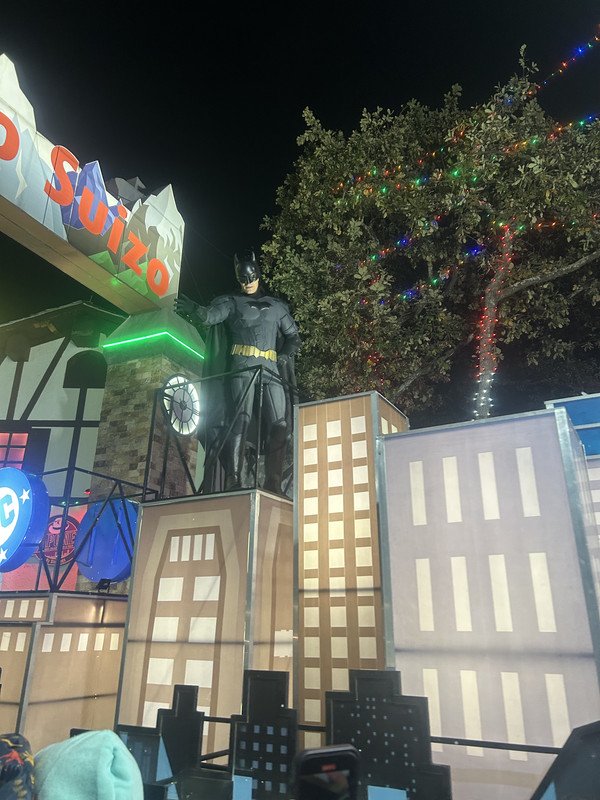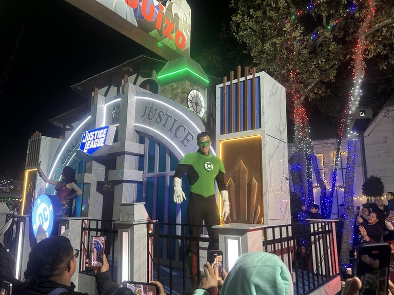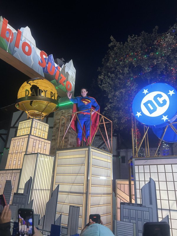 Walking through the park during the parade felt like moving inside a living show โ superheroes above the crowd, glowing decorations everywhere, and people smiling while recording the moment.