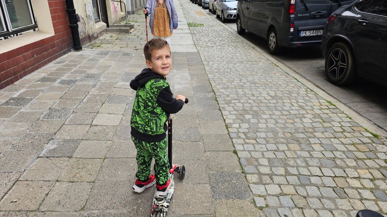 Nawet krótki spacer po odbiór paczki zamienił się w małą przygodę – zwłaszcza dla najmłodszego, który był z siebie dumny jak nigdy.