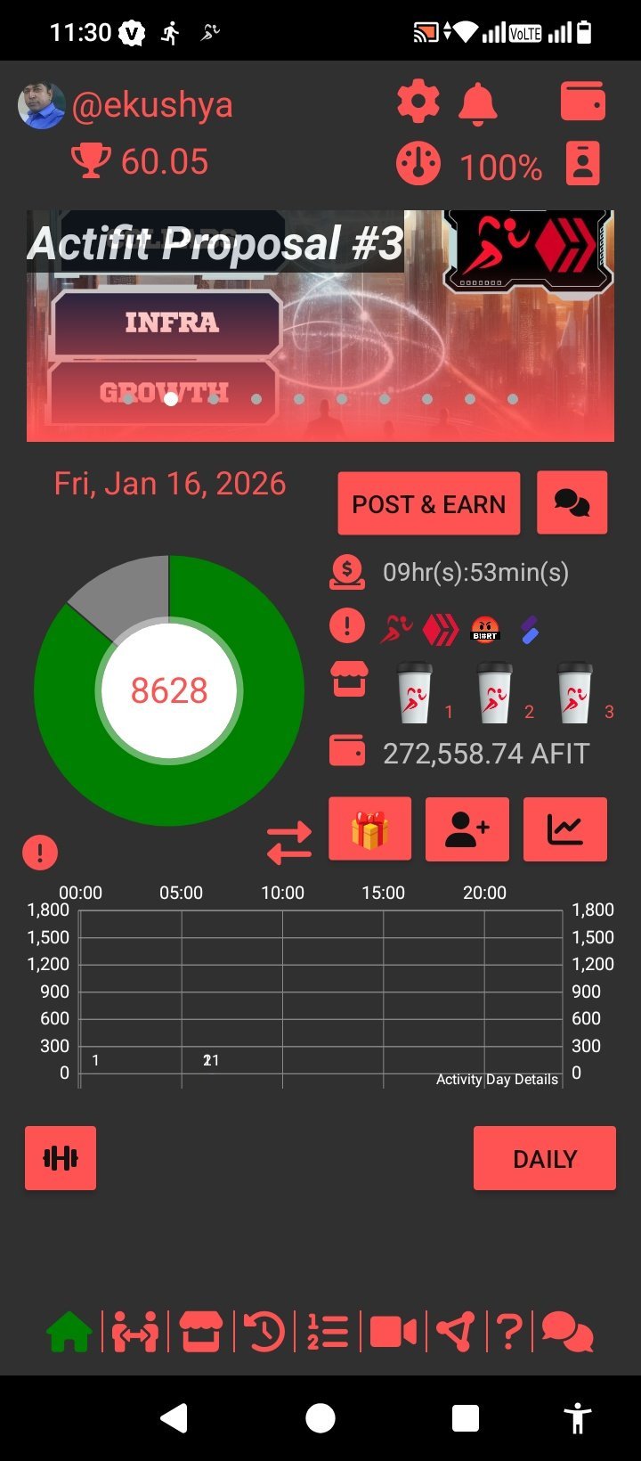 You have been rewarded 603.981 AFIT tokens for your effort in reaching 8650 activity, as well as your user rank and report quality!