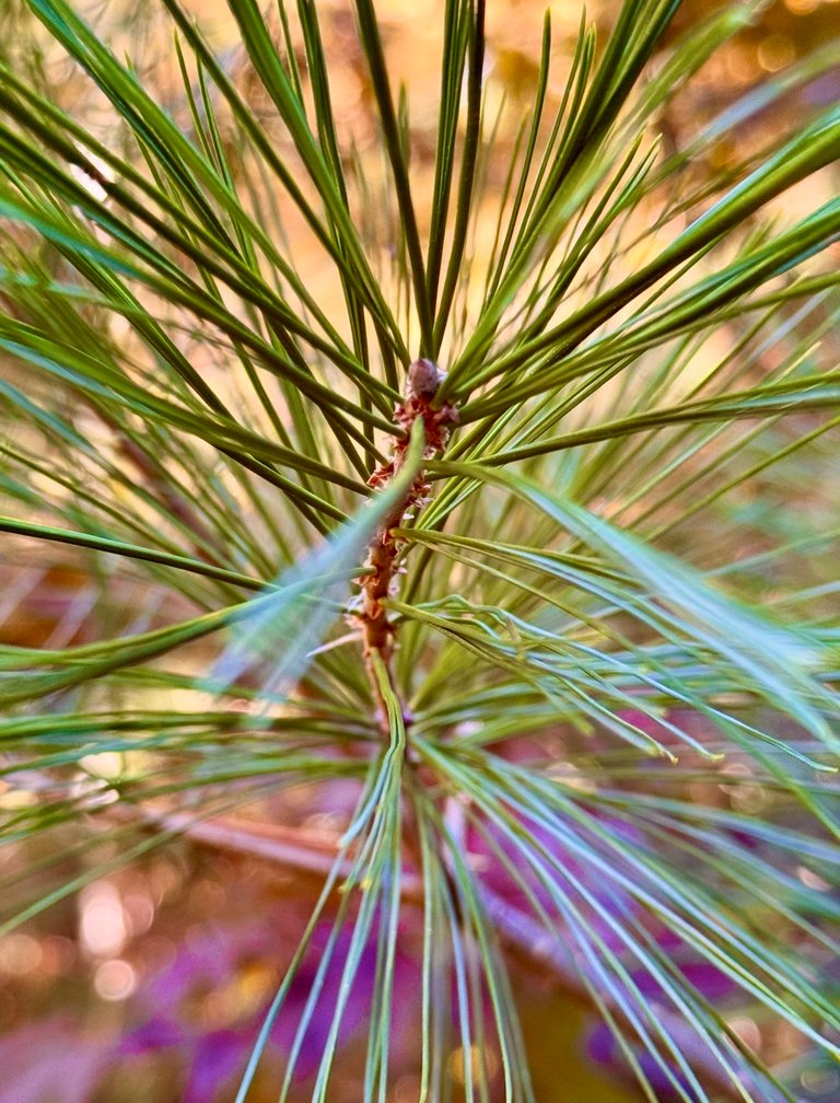 The cedar trees and the pine trees, although evergreen, still drop needles and boughs. They turn a golden brown and hang onto the trees until rain or wind knocks them off.