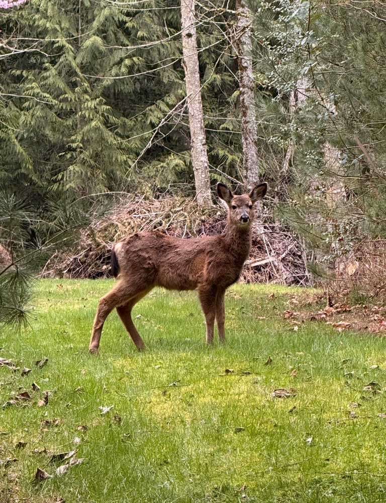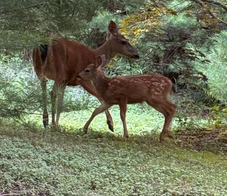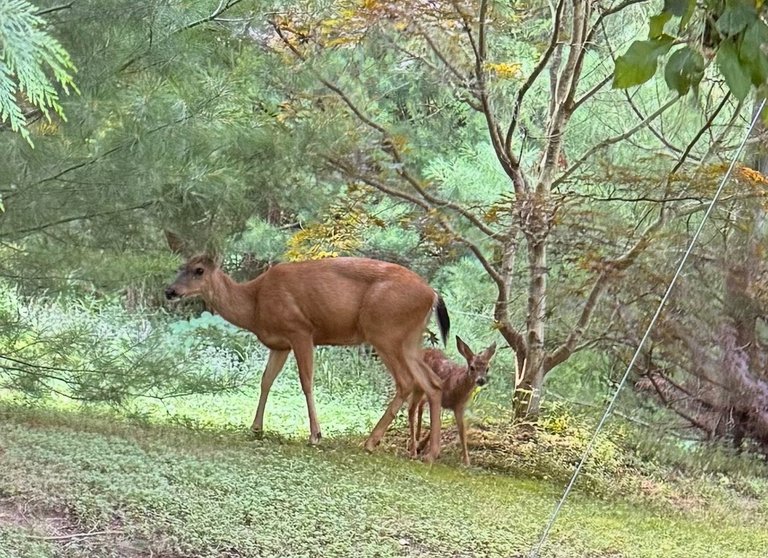 We fully believe that deer from years past who were around as babies, come back to have their babies here. Our yard is a deer safe area. 🦌