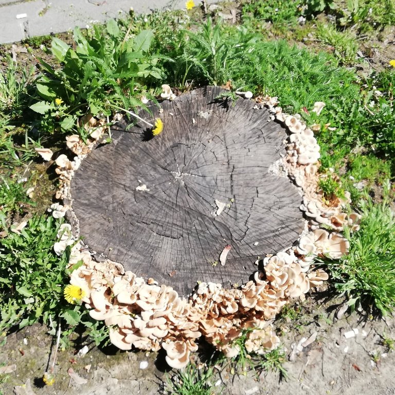 Nice display of 'shrooms around the tree stump!