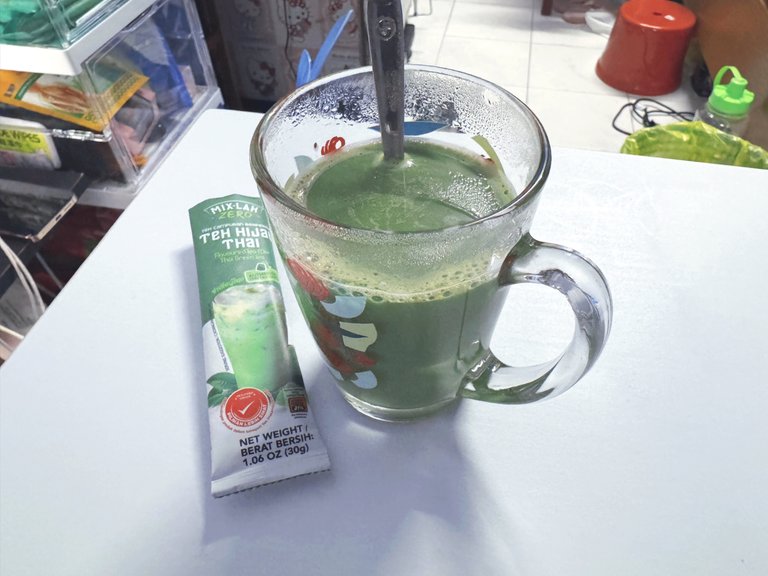 隔了好几天才喝的比利时巧克力,味道像是我平常冲泡的巧克力饮料。Teh Hijau Thai 泰式绿奶茶