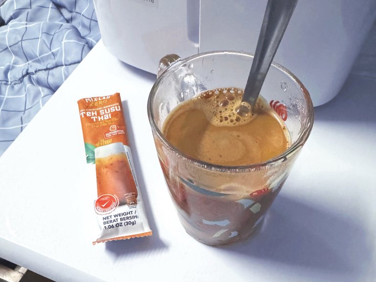 因为有香芋才买了一整盒的 MIX-LAH,所以第一包就先开了这包来喝。浓厚的香芋香味果然好喝!Teh Susu Thai 泰式奶茶