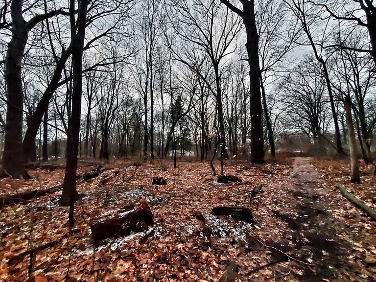 When we went for our long walk to the forest, it was getting dark, and almost no more ice. That's Michigan weather, so changing!